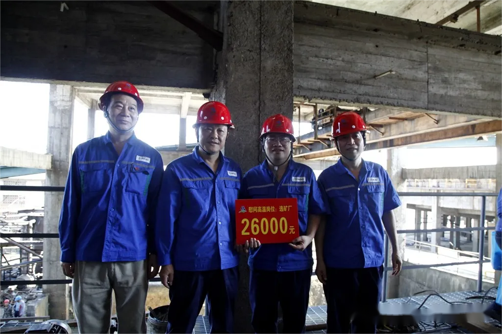 7月30日上午,礦業(yè)公司黨政領(lǐng)導(dǎo)班子分3組分別到選礦廠、露天礦、綜合保障部、技術(shù)中心、工程工區(qū)全尾充填等生產(chǎn)崗位慰問,為高溫堅守崗位的員工送上礦泉水、飲料、毛巾、香皂等防暑禮包,共計520份。